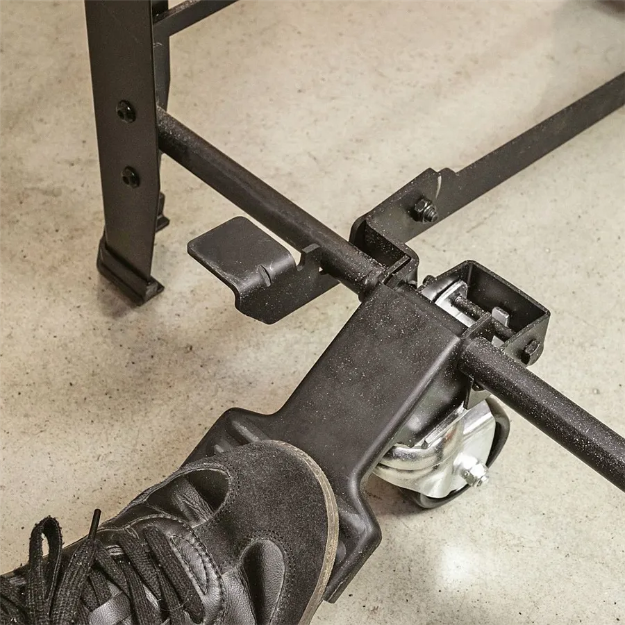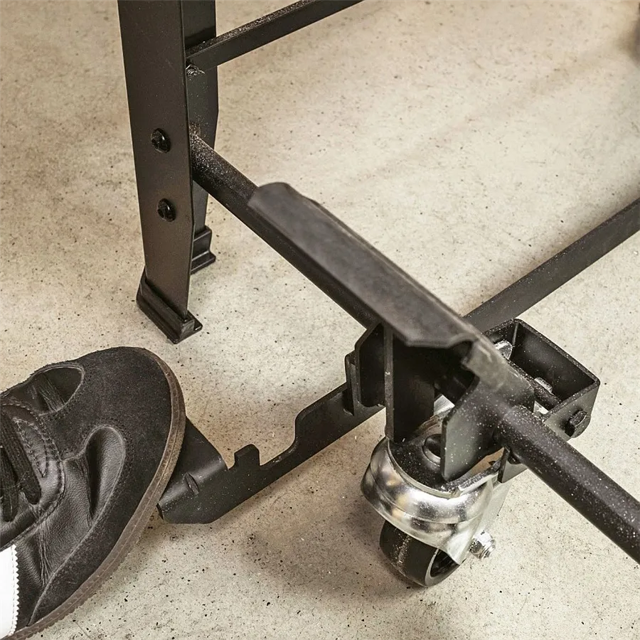 Solidna stalowa konstrukcja gwarantuje maksymalną stabilność nawet podczas intensywnej eksploatacji. Dzięki mechanizmowi pedałowemu i zintegrowanym kółkom stojak jest łatwy w obsłudze – urządzenie można po prostu przenieść tam, gdzie jest aktualnie potrzebne.