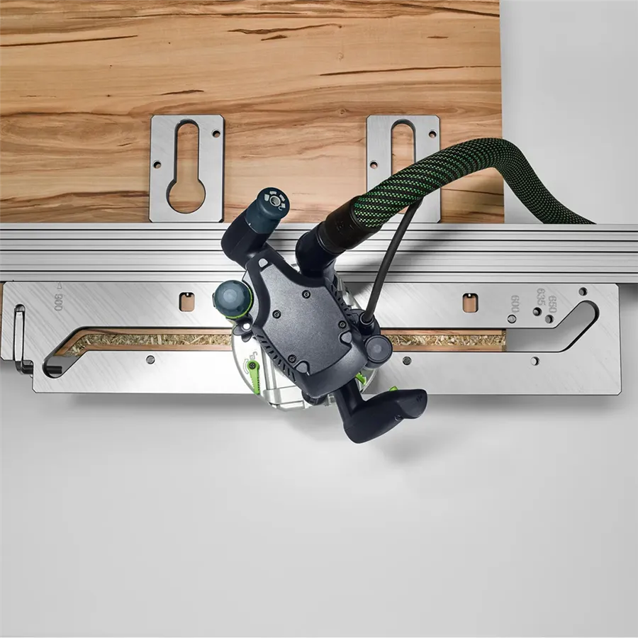 - Dodatkowo dwa szablony do frezowania pod montaż standardowych okuć na spodniej stronie płyty z możliwością dowolnego pozycjonowania
